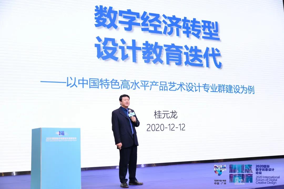 分享會上,廣東輕工職業(yè)技術(shù)學(xué)院藝術(shù)設(shè)計學(xué)院院長、教育部職業(yè)院校藝術(shù)設(shè)計類專業(yè)教學(xué)指導(dǎo)委員會產(chǎn)品設(shè)計專門委員會主任委員桂元龍以“數(shù)字經(jīng)濟轉(zhuǎn)型,設(shè)計教育迭代”為主題作演講,探討數(shù)字經(jīng)濟時代下職業(yè)教育新方向。