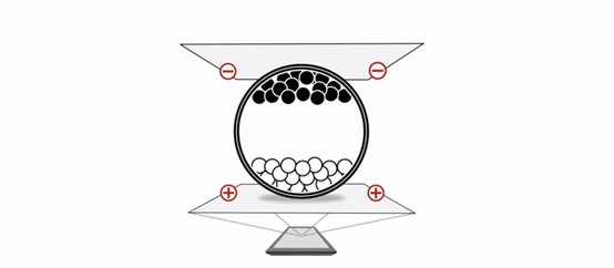 電子墨水屏表面附著無(wú)數(shù)個(gè)體積很小的“微膠囊”,每一個(gè)微膠囊里面都有無(wú)數(shù)個(gè)帶負(fù)電荷的白色和帶正電荷的黑色顆粒,白黑粒子在電場(chǎng)的作用下會(huì)上下運(yùn)動(dòng),從而讓我們看到屏幕上的黑白圖像,這種屏幕,我們都叫黑白墨水屏。