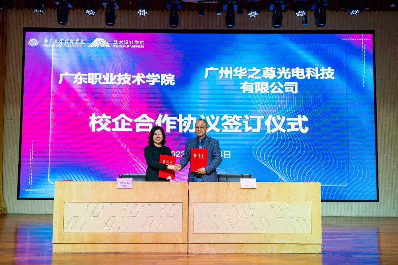 2023年12月28日,廣州華之尊光電科技有限公司與廣東職業(yè)技術(shù)學(xué)院聯(lián)合共建的激光科技藝術(shù)創(chuàng)新協(xié)同研發(fā)中心揭牌儀式在廣東職業(yè)技術(shù)學(xué)院隆重舉行。