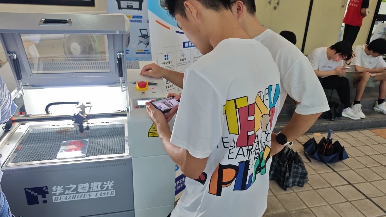 在這場盛大的競技場上,華之尊激光精心布置了展臺?,F(xiàn)場不僅展示了桌面式非金屬精密型激光切割機(HZZ-V200B)和桌面式激光打標機(HZZ-FM100),還呈現(xiàn)了一系列令人矚目的應用佳作,它們橫跨創(chuàng)新創(chuàng)業(yè)、機械、微流控、生物醫(yī)療、機械電子及新工科等諸多領(lǐng)域,每一件作品都如璀璨星辰般熠熠生輝,彰顯了激光加工技術(shù)的無限魅力。