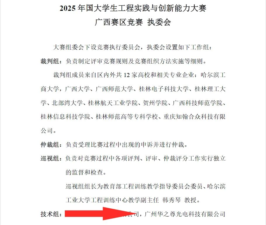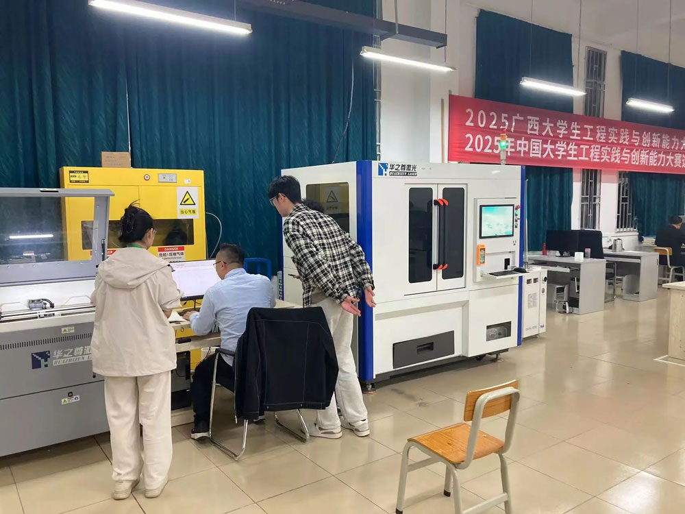 華之尊激光作為中國大學(xué)生工程實(shí)踐與創(chuàng)新能力大賽官方指定激光加工設(shè)備服務(wù)商及激光技術(shù)支持單位,2019年起,連續(xù)多年為國賽、省賽(區(qū)賽)提供激光設(shè)備及技術(shù)支持。2025年,華之尊激光再次受邀參加廣西賽區(qū)大賽,作為本次唯一激光設(shè)備及激光技術(shù)支持單位,為新能源車賽道、“智能+”賽道的精密零部件加工等環(huán)節(jié)提供核心設(shè)備保障,為參賽團(tuán)隊(duì)提供強(qiáng)大的技術(shù)支撐。